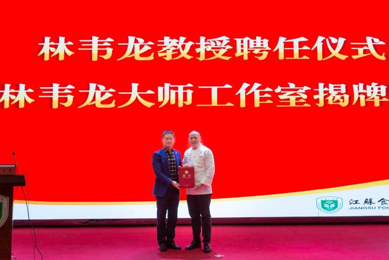 陶书中对林韦龙大师受聘学院兼职教授及成立大师工作室表示热烈欢迎。他对林韦龙大师从一个平凡的食品学院学生到现如今世界级的烹饪大师致以崇高的敬意,这一路的辛酸苦楚与艰苦奋斗只有林大师自己能够体会,激励在校大学生要像林韦龙学长学习,树立远大的目标,把握在校的学习时间,打好烹饪技能基础,学有所长,学以致用。